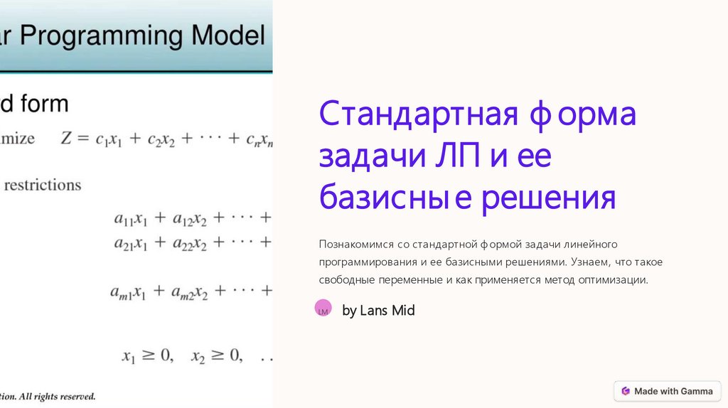 Стандартная форма задачи ЛП и её базисные решения