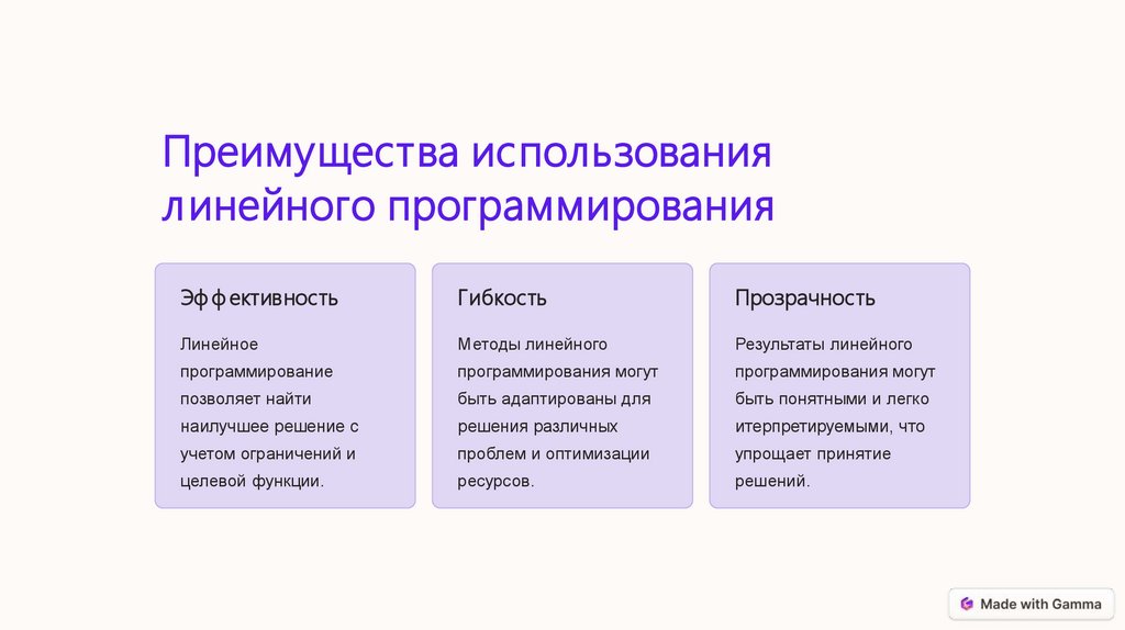 принципах и преимуществах линейного программирования.
