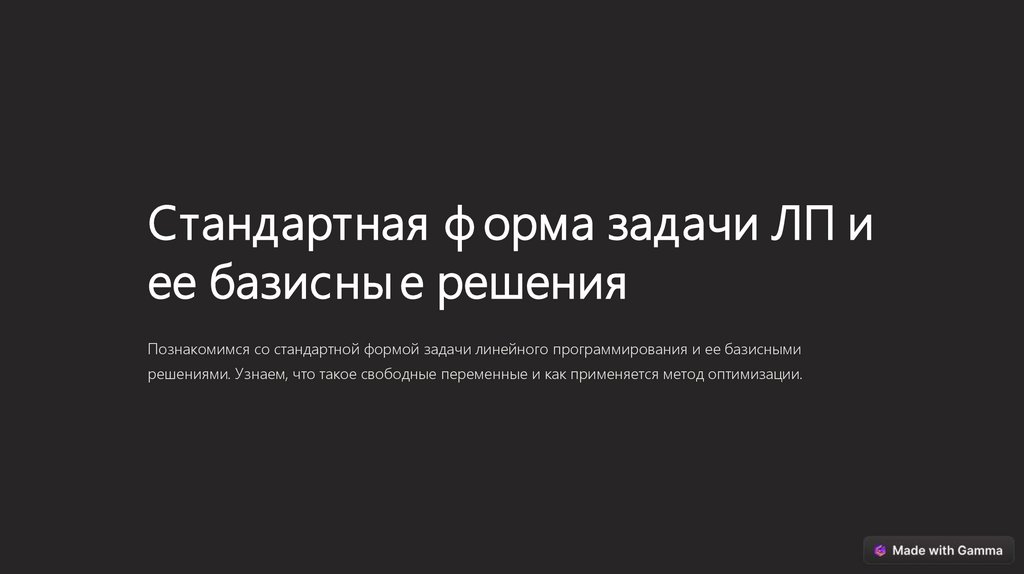 Познакомимся со стандартной формой задачи линейного программирования и ее базисными