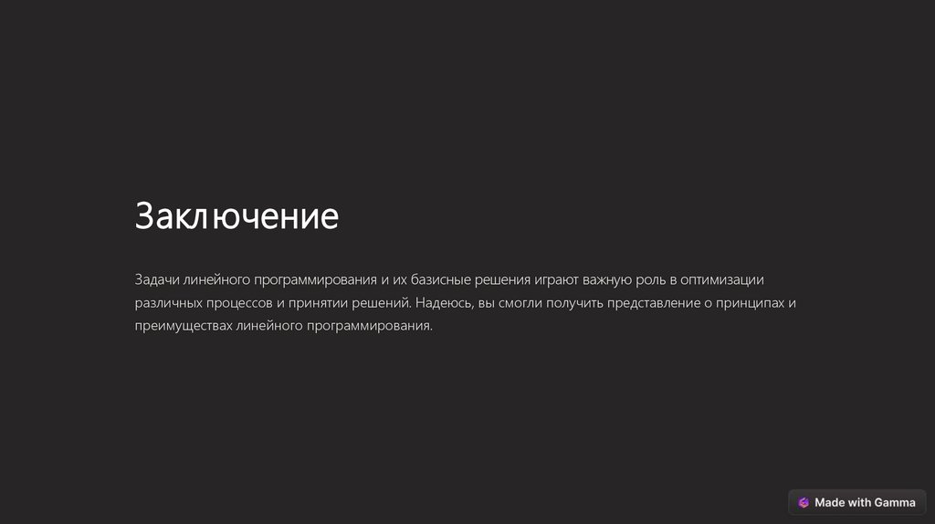 ЗаключениеЗадачи линейного программирования и их базисные решения играют важную роль в оптимизации