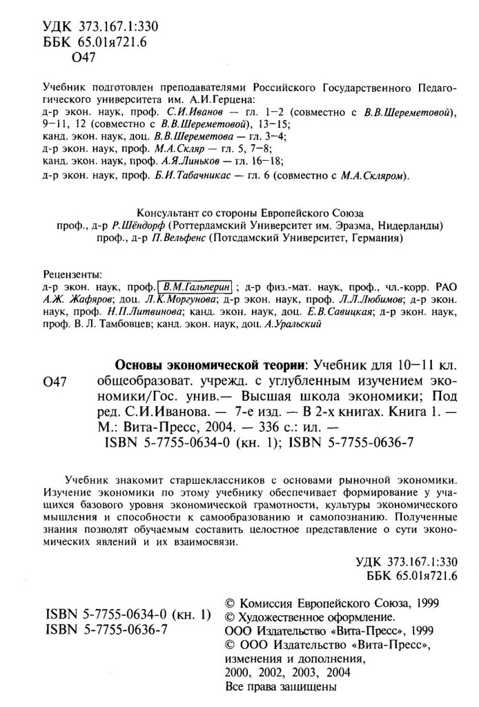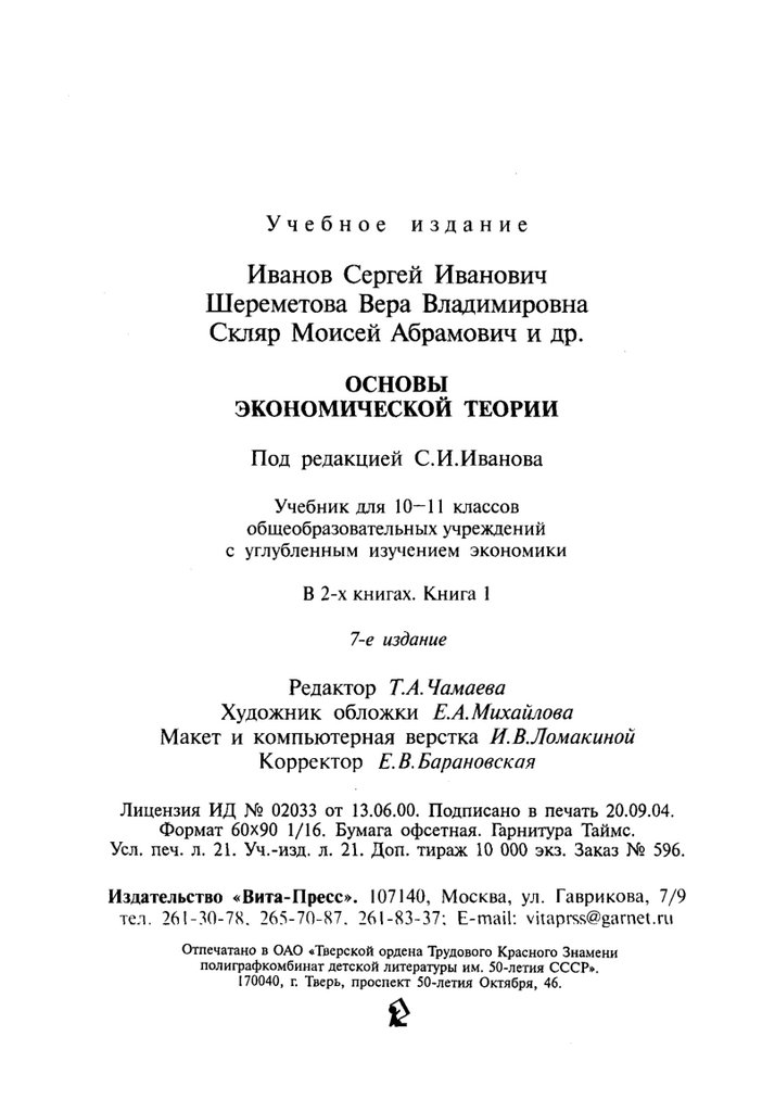 Основы экономической теории. Книга 1 (ред. С.И. Иванов)