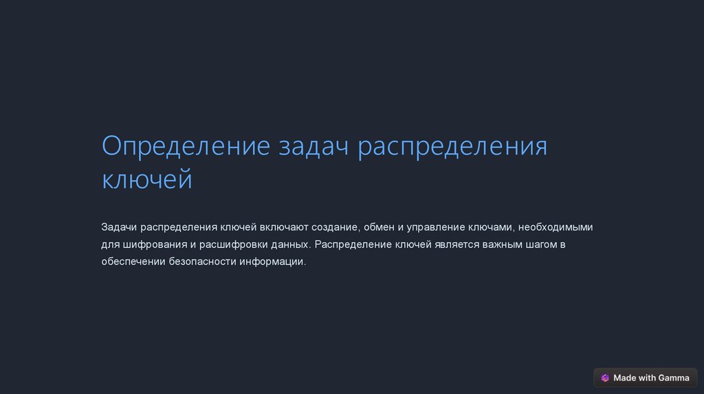 Задачи распределения ключей включают создание, обмен и управление ключами, необходимыми