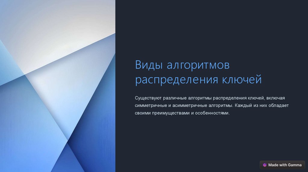 Виды алгоритмовраспределения ключей