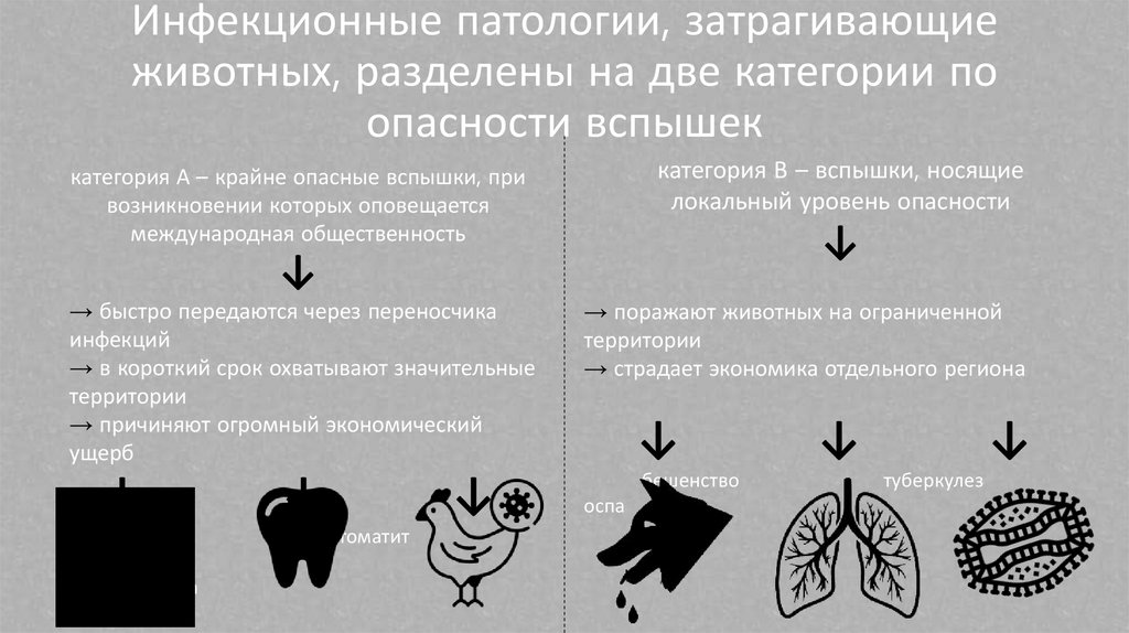 Инфекционные патологии, затрагивающиеживотных, разделены на две категории по