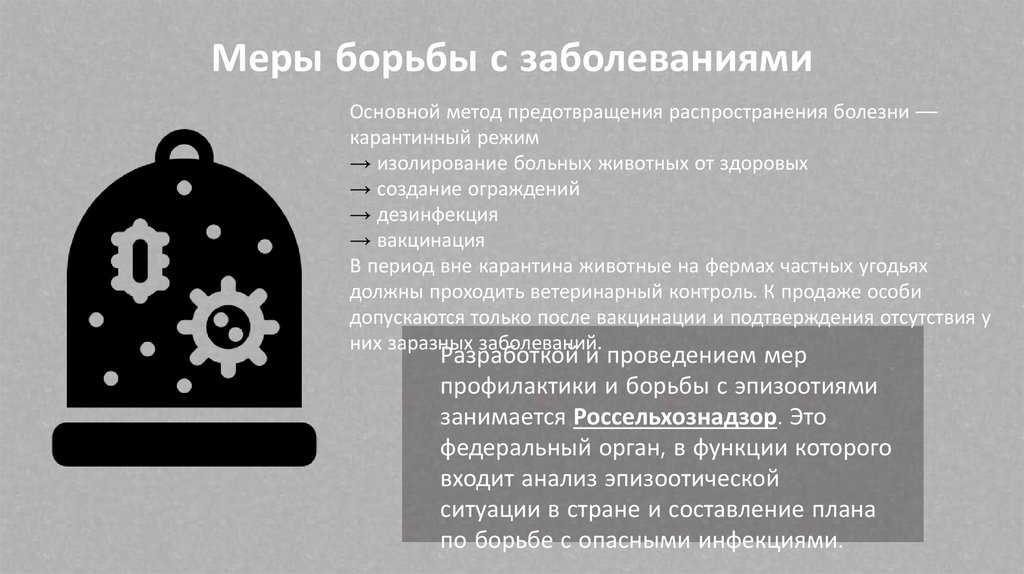 Меры борьбы с заболеваниямиОсновной метод предотвращения распространения болезни —