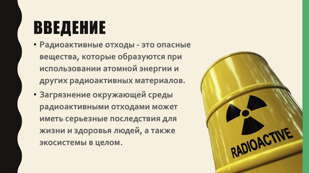 ВВЕДЕНИЕ• Радиоактивные отходы - это опасные