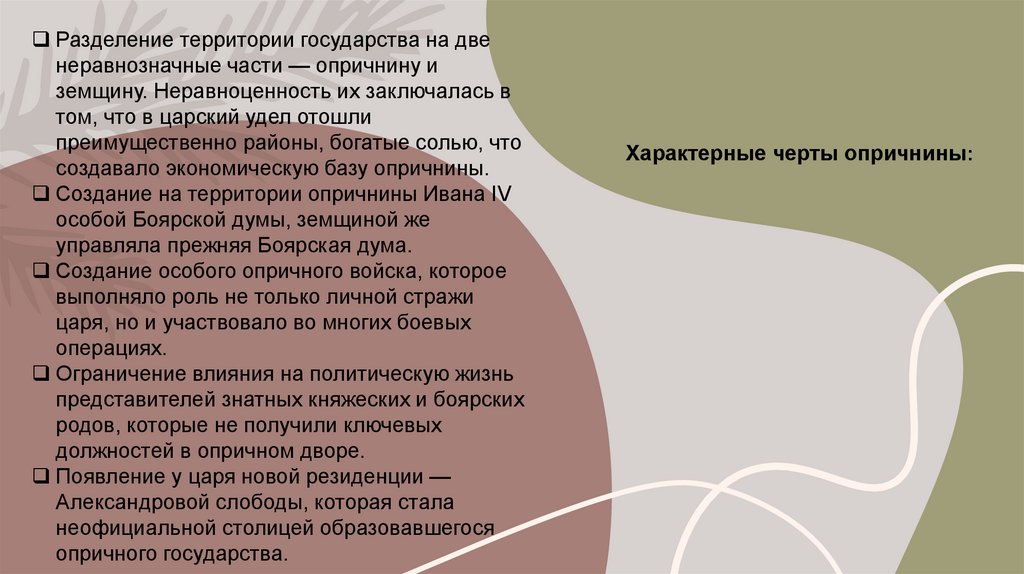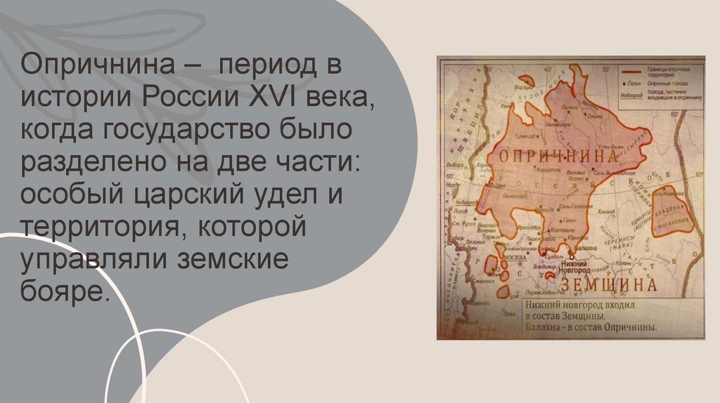 Разделение территории государства на двенеравнозначные части — опричнину и