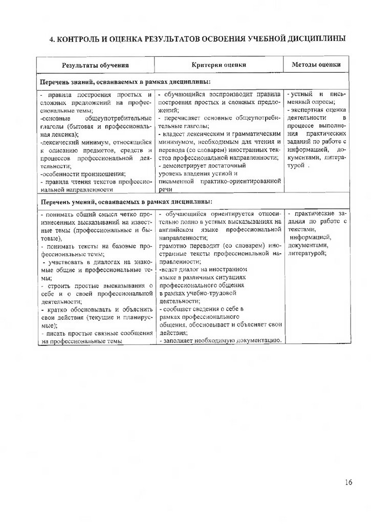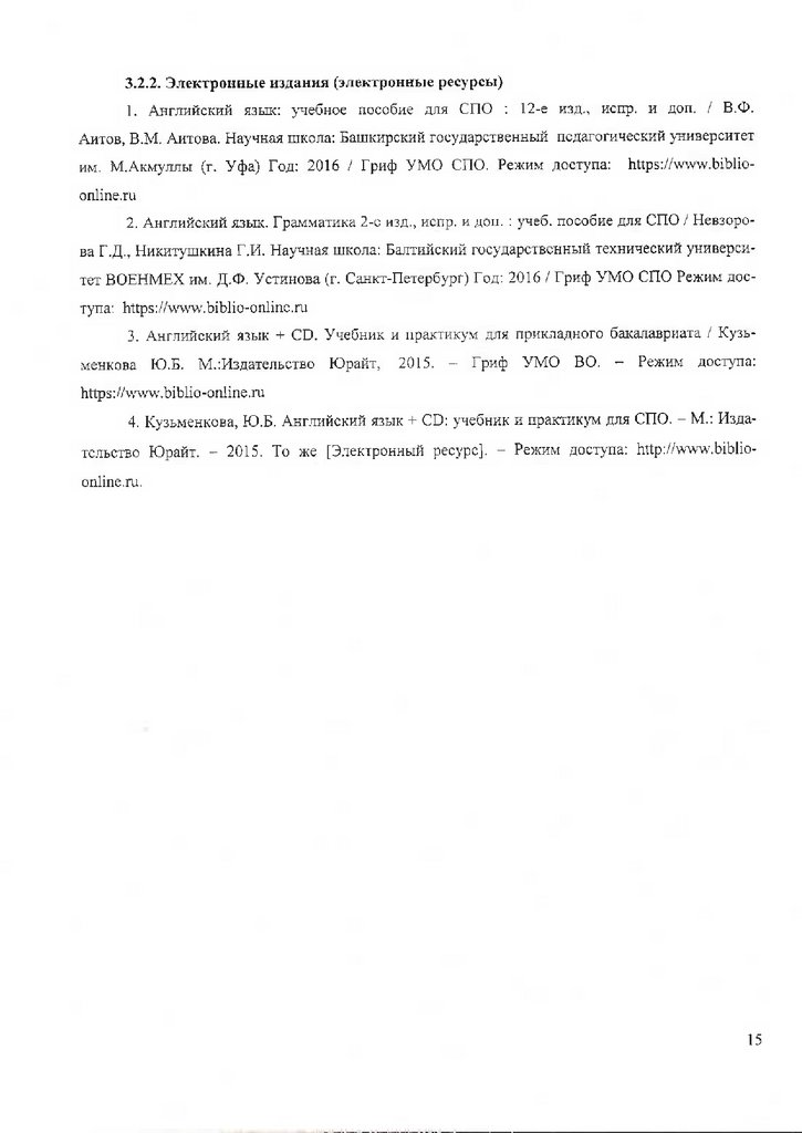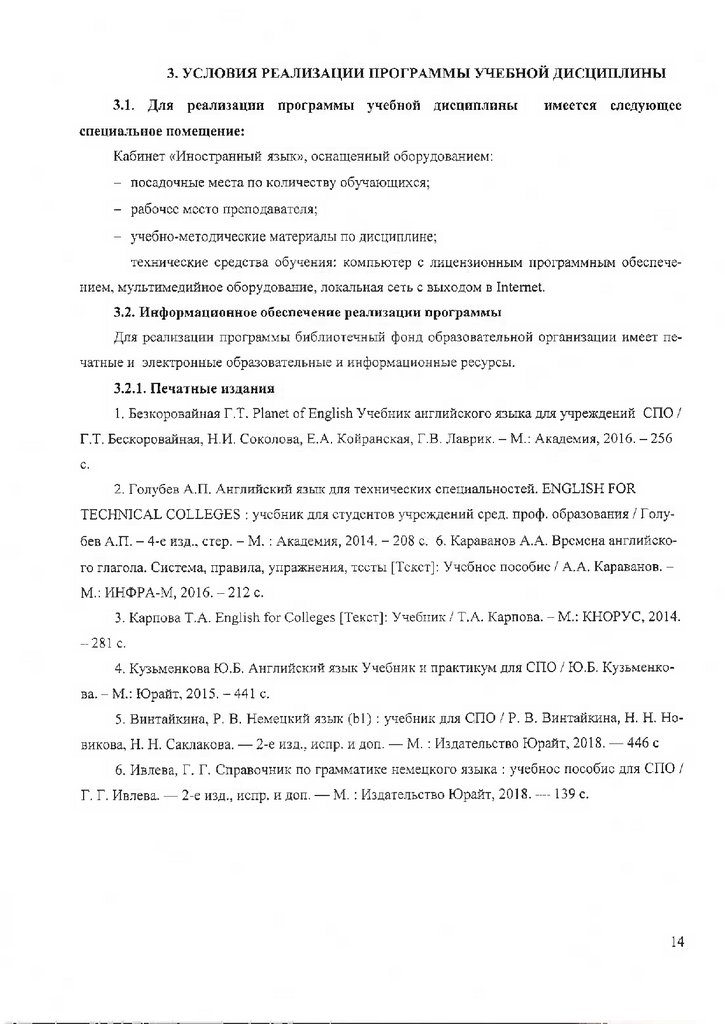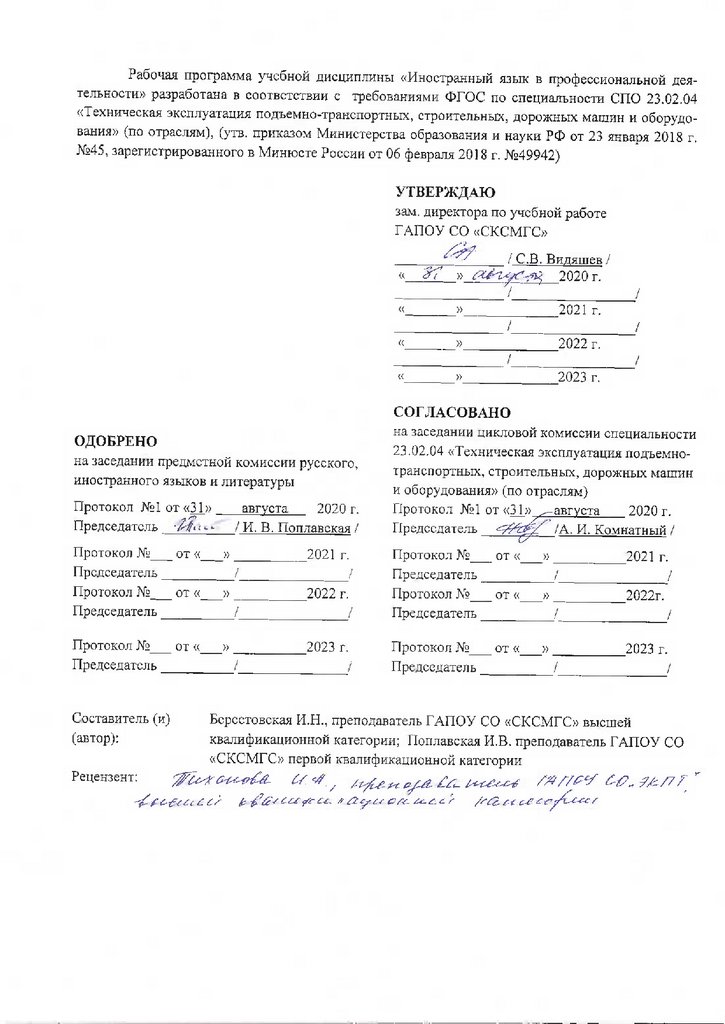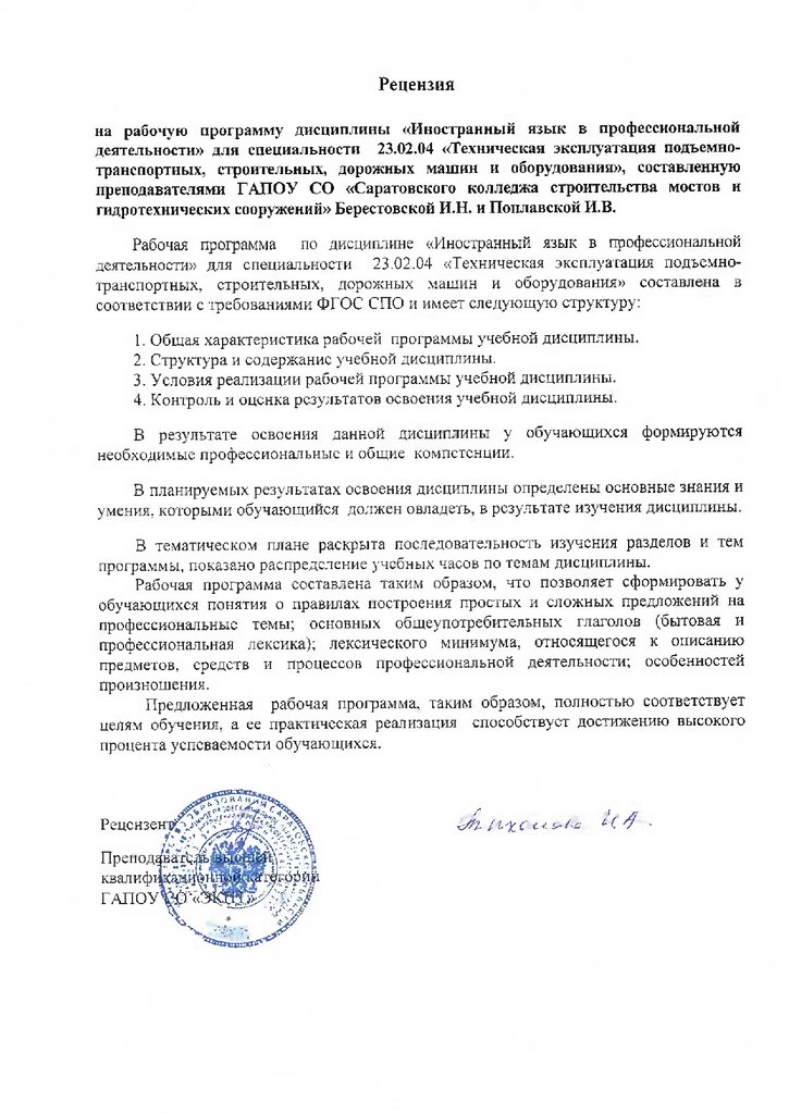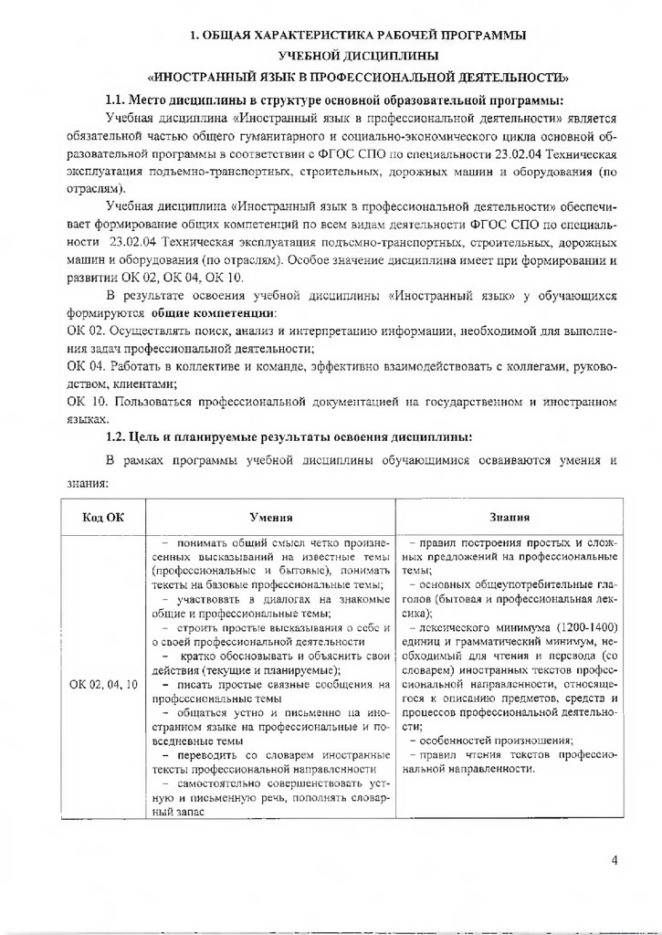 Рабочая программа учебной дисциплины ОГСЭ 04 "Иностранный язык в профессиональной деятельности"