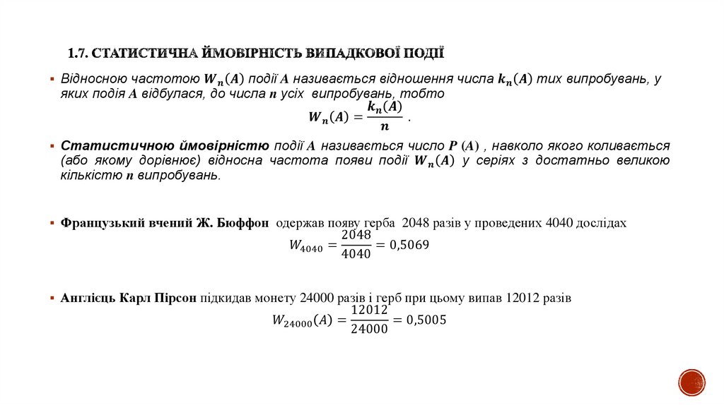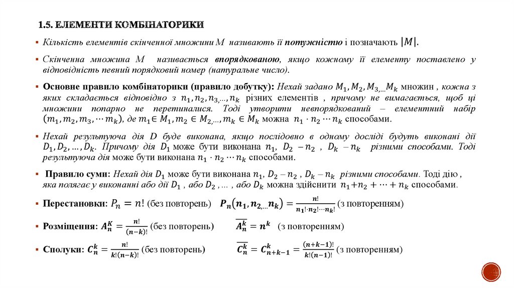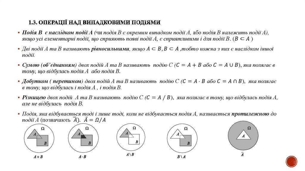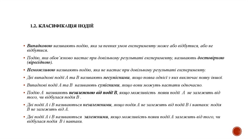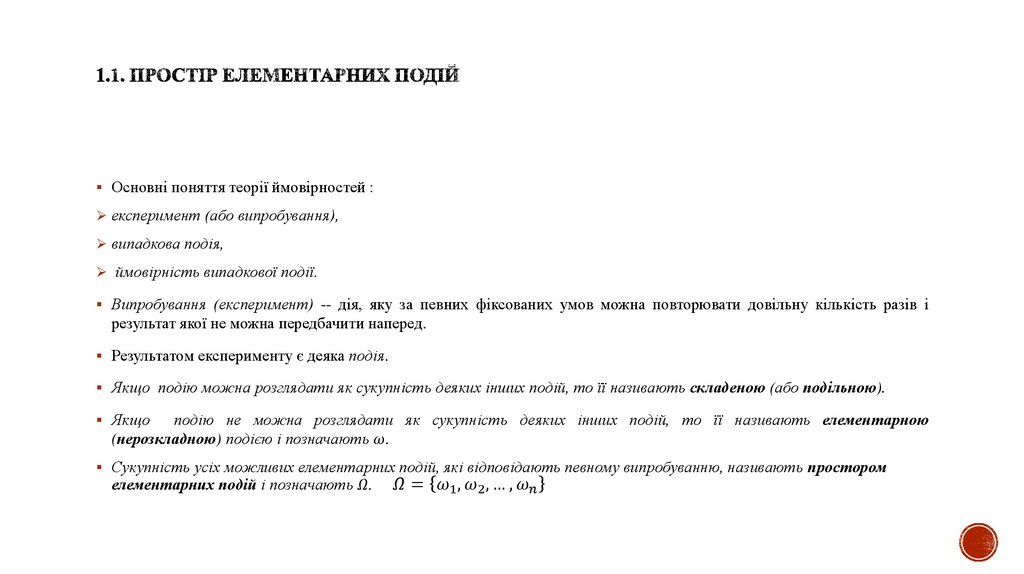 Основні поняття теорії ймовірностей :експеримент (або випробування),
