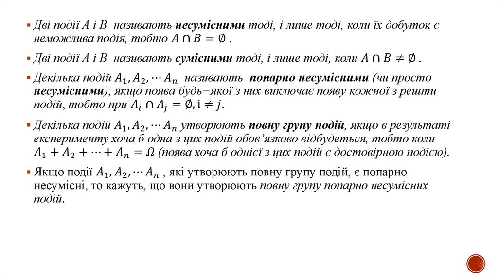 Якщо подію можна розглядати як сукупність деяких інших подій, то її називають складеною (або подільною).