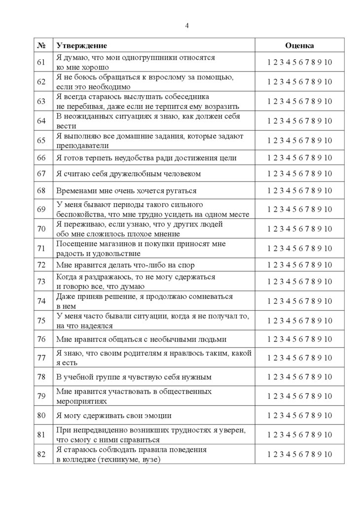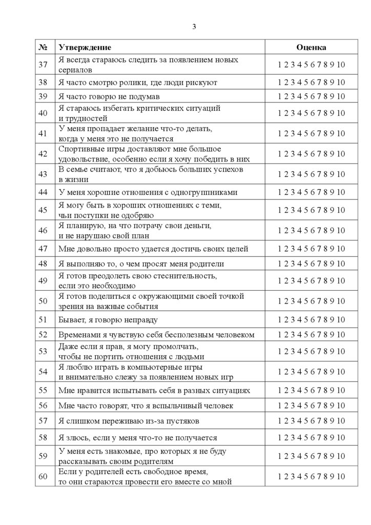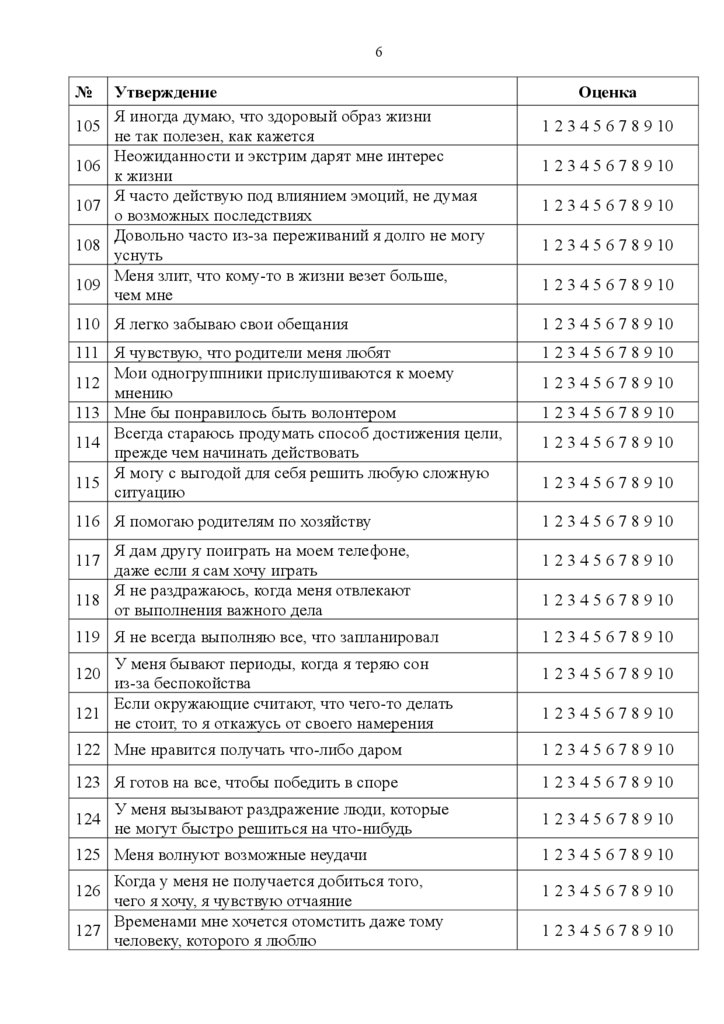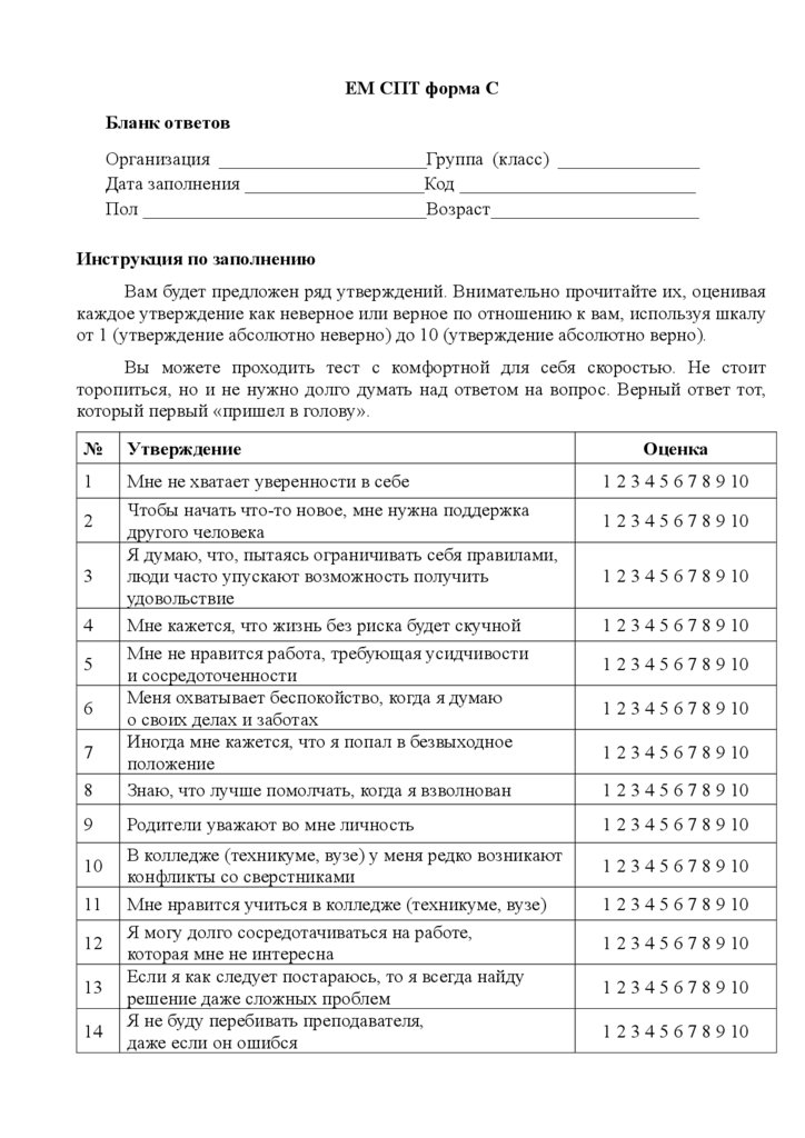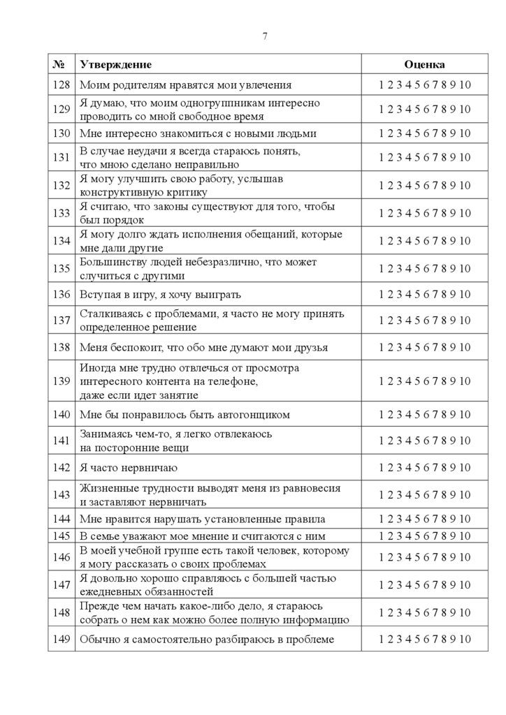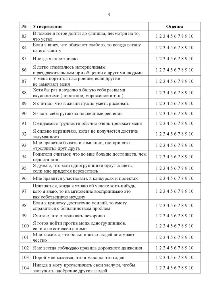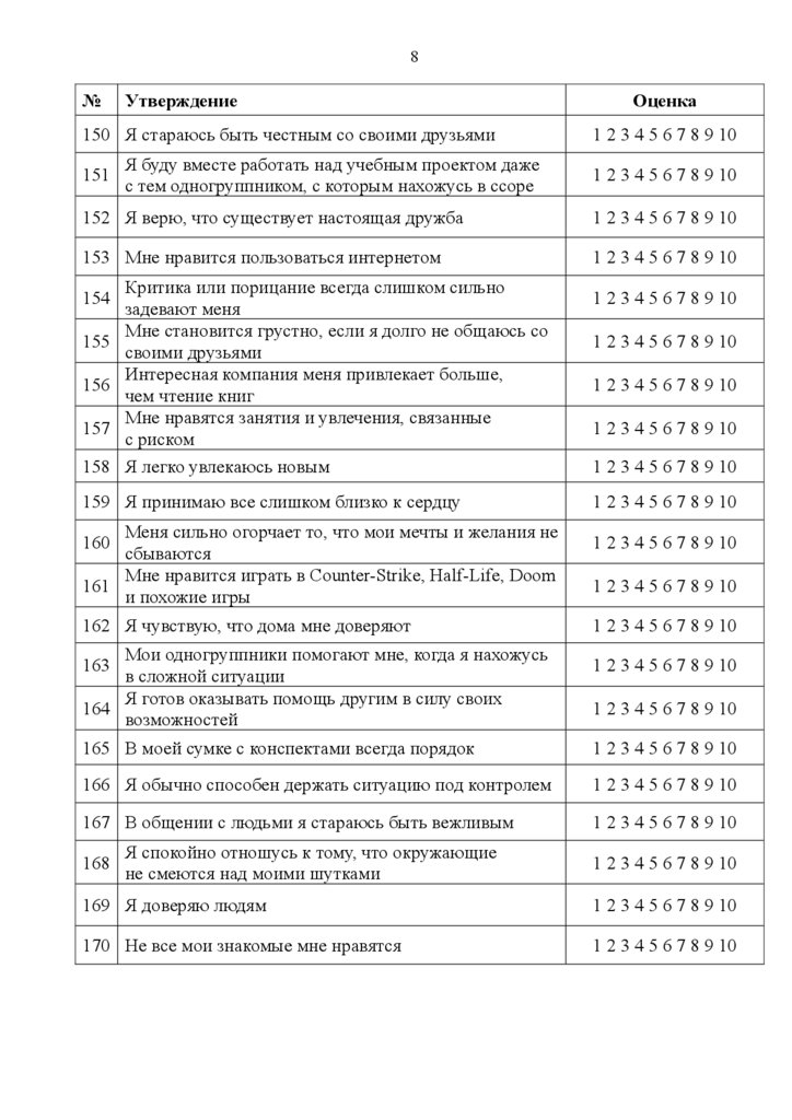 от 1 (утверждение абсолютно неверно) до 10 (утверждение абсолютно верно).