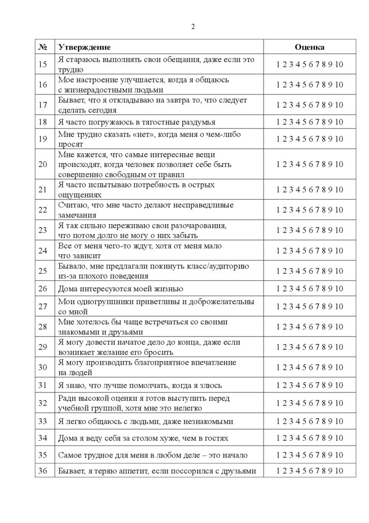 Вам будет предложен ряд утверждений. Внимательно прочитайте их, оценивая