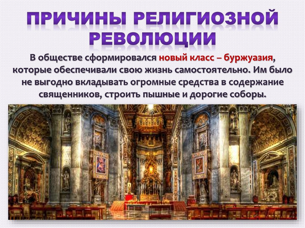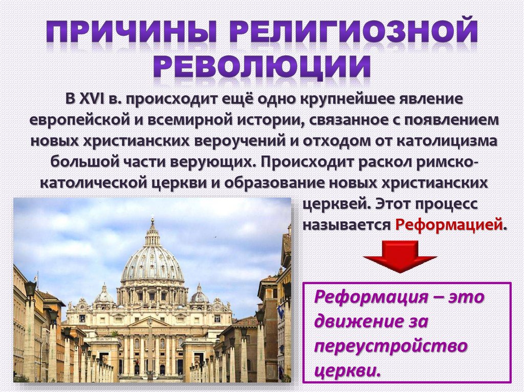 большой части верующих. Происходит раскол римскокатолической церкви и образование новых христианских