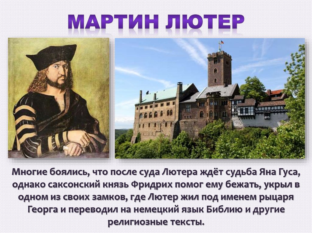 Многие боялись, что после суда Лютера ждёт судьба Яна Гуса,однако саксонский князь Фридрих помог ему бежать, укрыл в