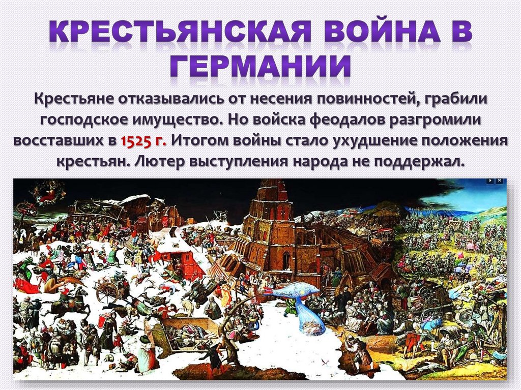 Крестьяне отказывались от несения повинностей, грабилигосподское имущество. Но войска феодалов разгромили