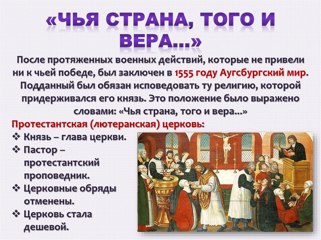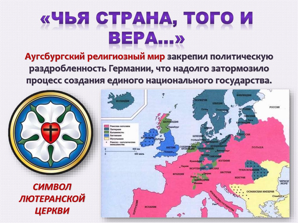 Аугсбургский религиозный мир закрепил политическуюраздробленность Германии, что надолго затормозило