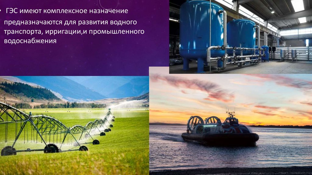 • ГЭС имеют комплексное назначениепредназначаются для развития водного