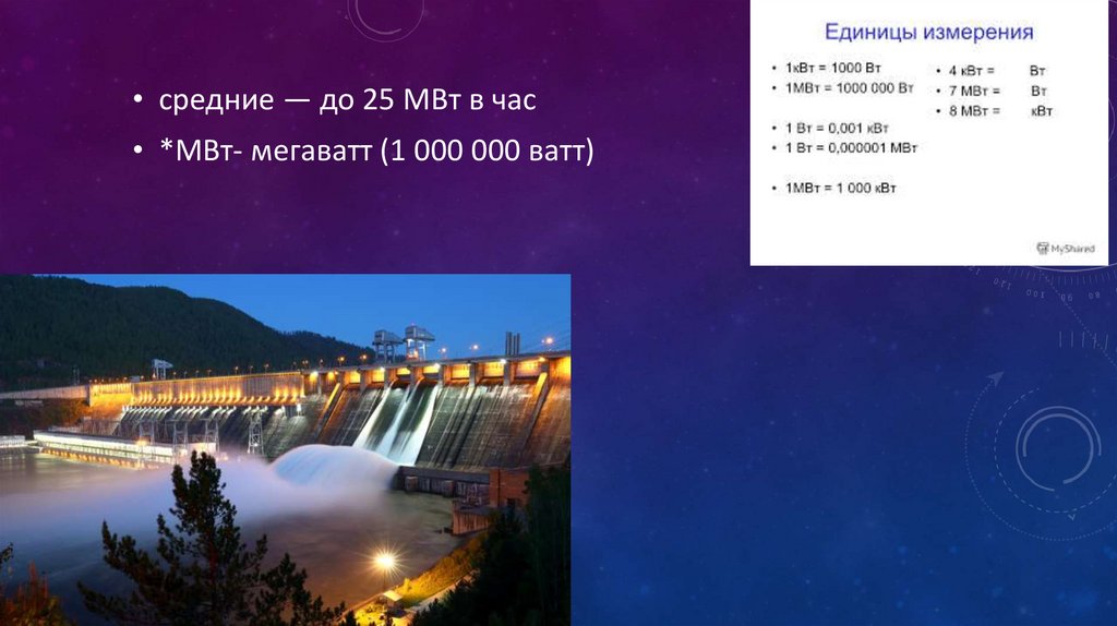 • средние — до 25 МВт в час• *МВт- мегаватт (1 000 000 ватт)