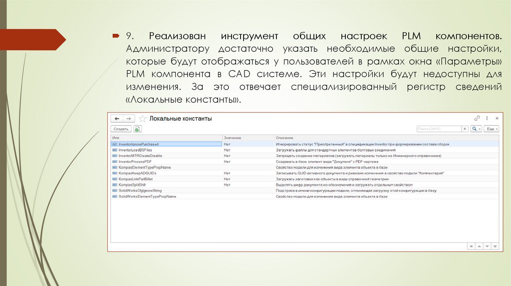 PLM компонента в CAD системе. Эти настройки будут недоступны для