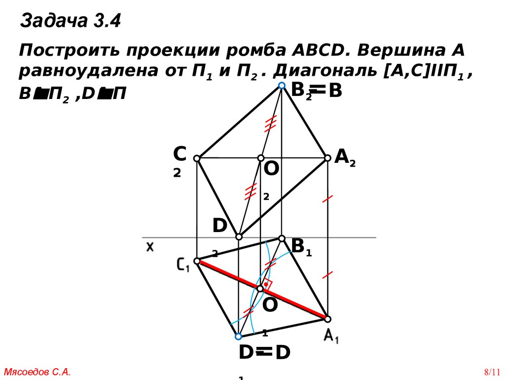Задача 3.4Построить проекции ромба АВСD. Вершина А