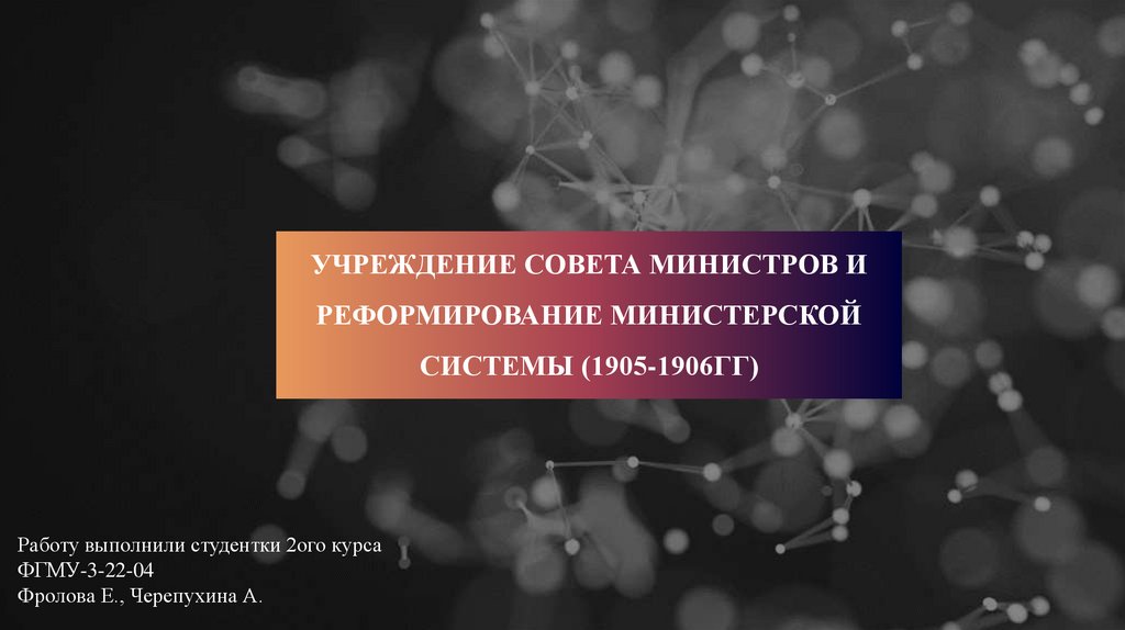 УЧРЕЖДЕНИЕ СОВЕТА МИНИСТРОВ ИРЕФОРМИРОВАНИЕ МИНИСТЕРСКОЙ