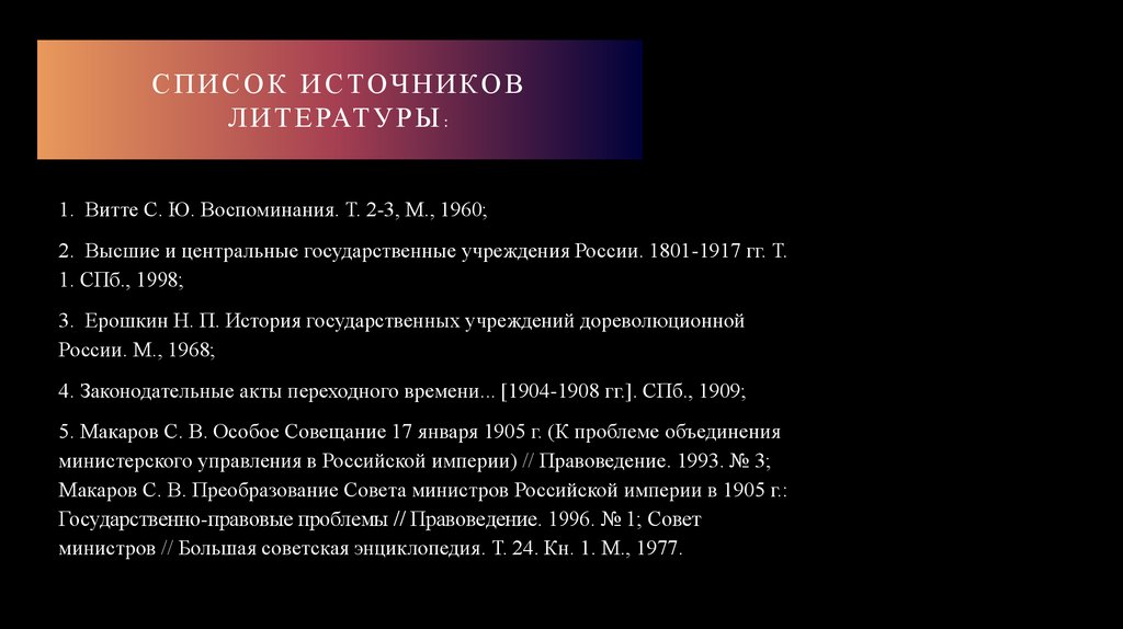 1. Витте С. Ю. Воспоминания. Т. 2-3, М., 1960;