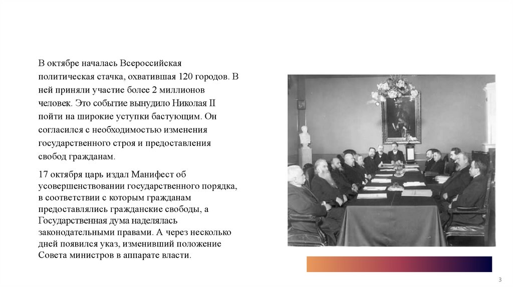 В октябре началась Всероссийскаяполитическая стачка, охватившая 120 городов. В