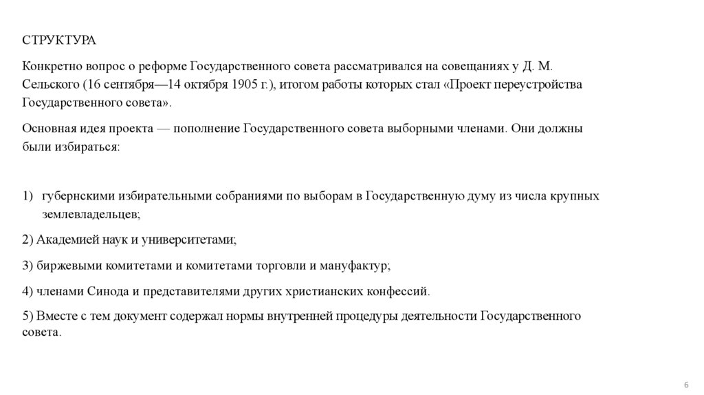 СТРУКТУРАКонкретно вопрос о реформе Государственного совета рассматривался на совещаниях у Д. М.
