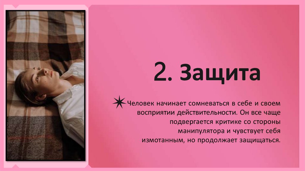 2. ЗащитаЧеловек начинает сомневаться в себе и своем