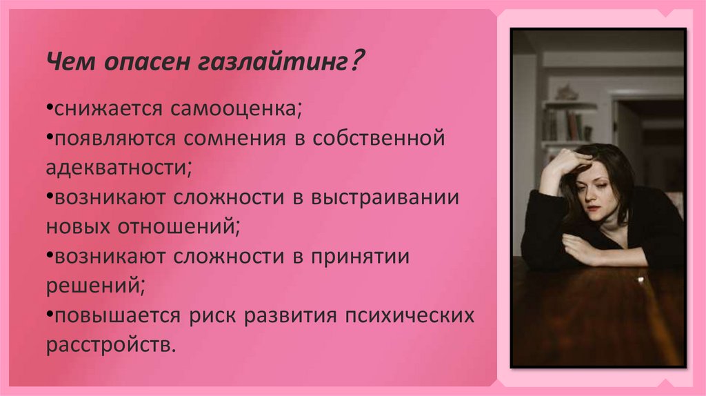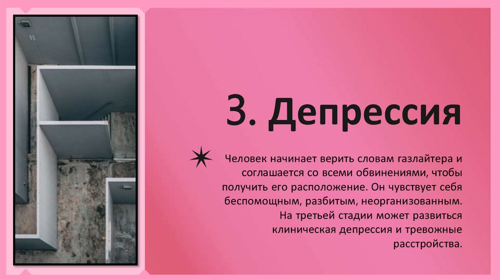 3. ДепрессияЧеловек начинает верить словам газлайтера и