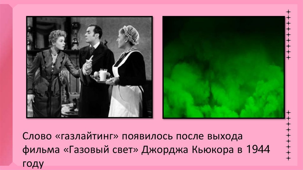 Слово «газлайтинг» появилось после выходафильма «Газовый свет» Джорджа Кьюкора в 1944
