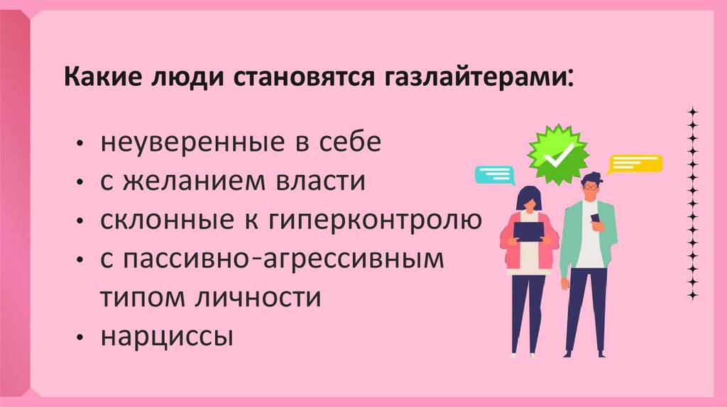 Какие люди становятся газлайтерами:• неуверенные в себе