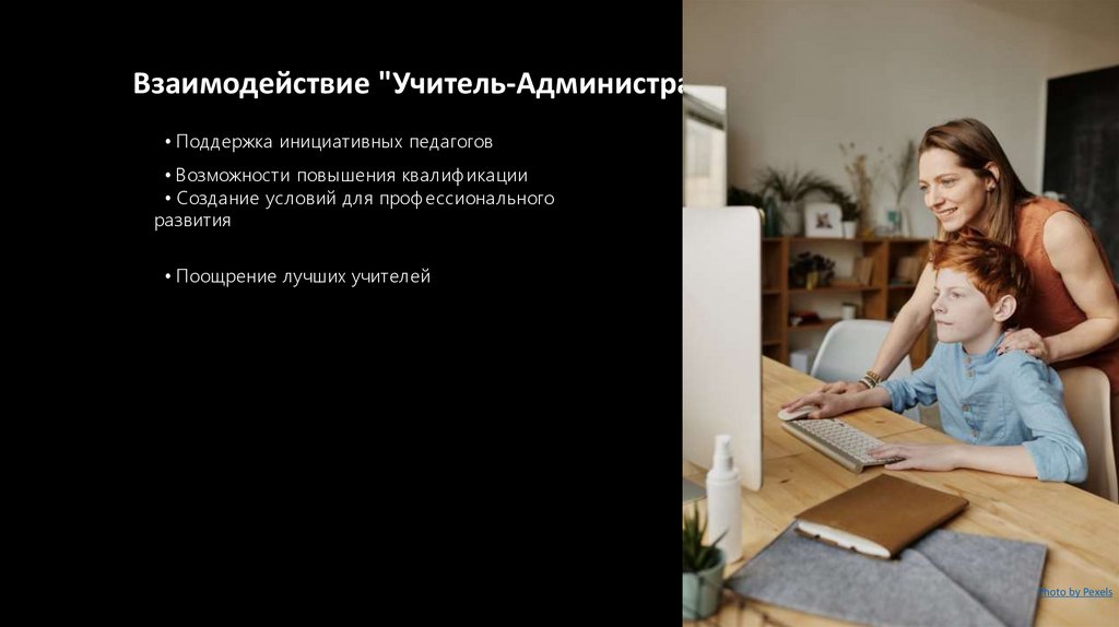 Взаимодействие "Учитель-Администрация"• Поддержка инициативных педагогов