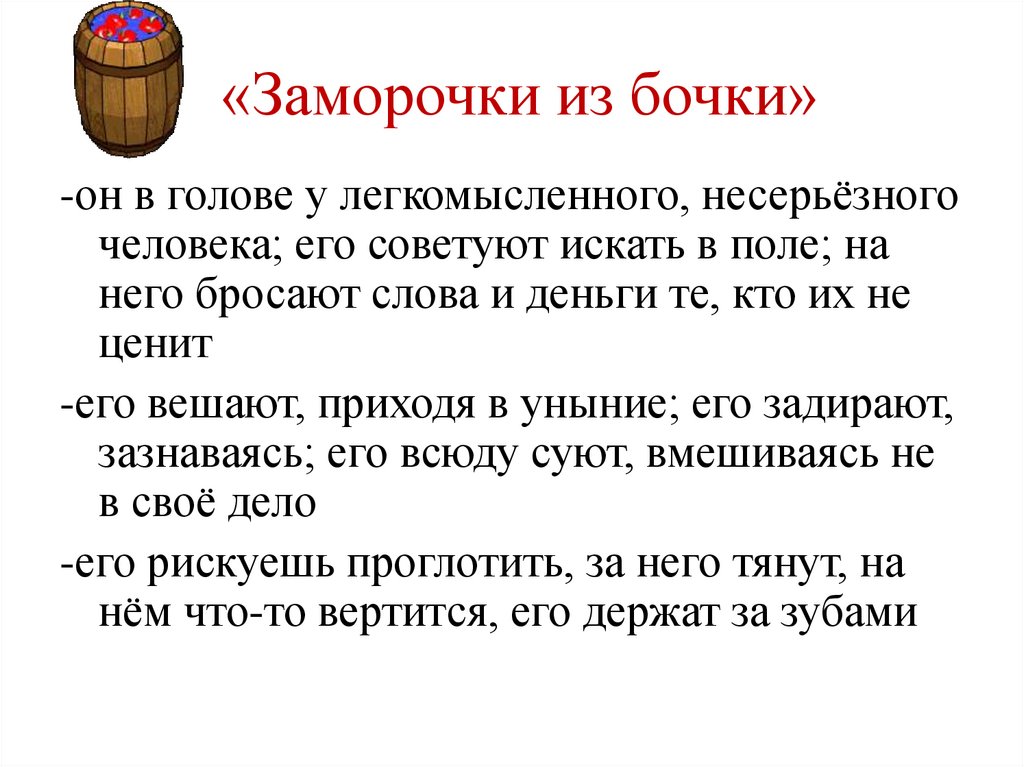 «Заморочки из бочки»-он в голове у легкомысленного, несерьёзного