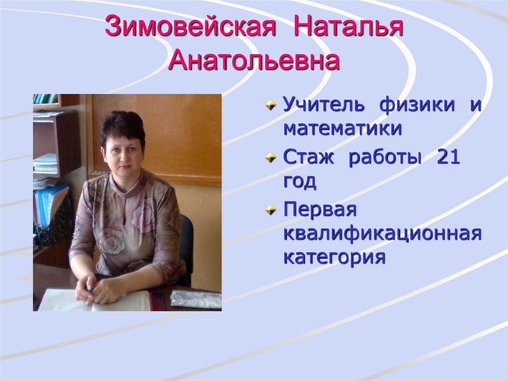 Зимовейская Наталья Анатольевна. Учитель физики и математики