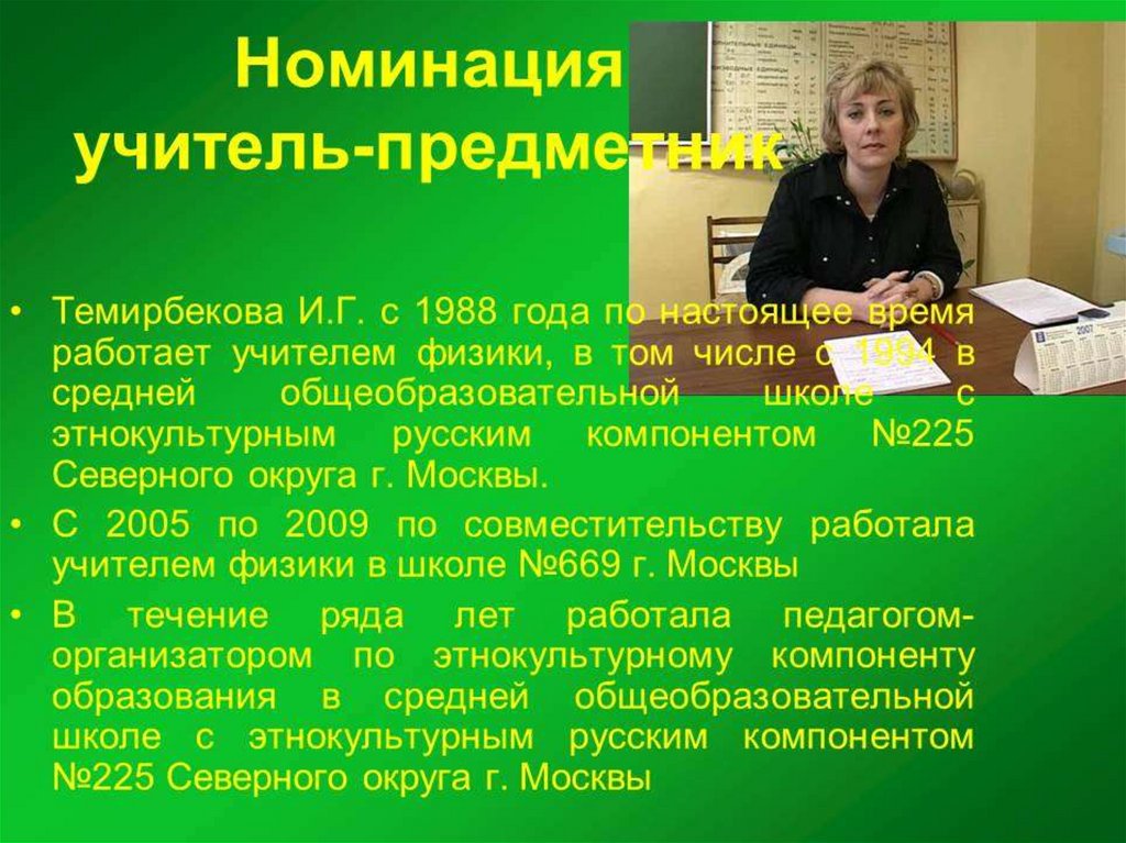 Темирбекова Ирина Геннадиевна. Учитель физики