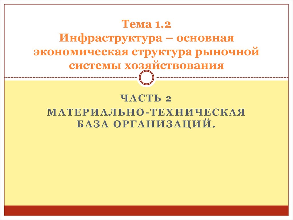 Инфраструктура – основная экономическая структура рыночной системы хозяйствования
