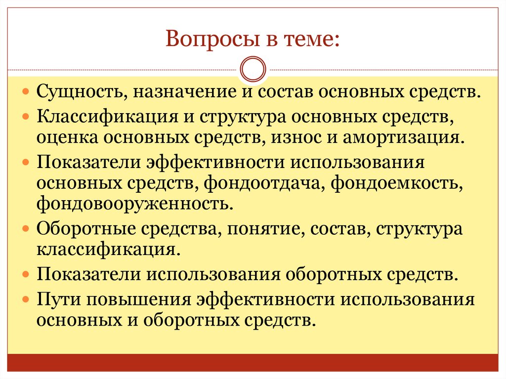 Вопросы в теме:Сущность, назначение и состав основных средств.