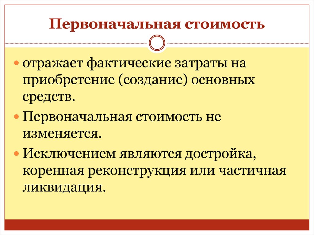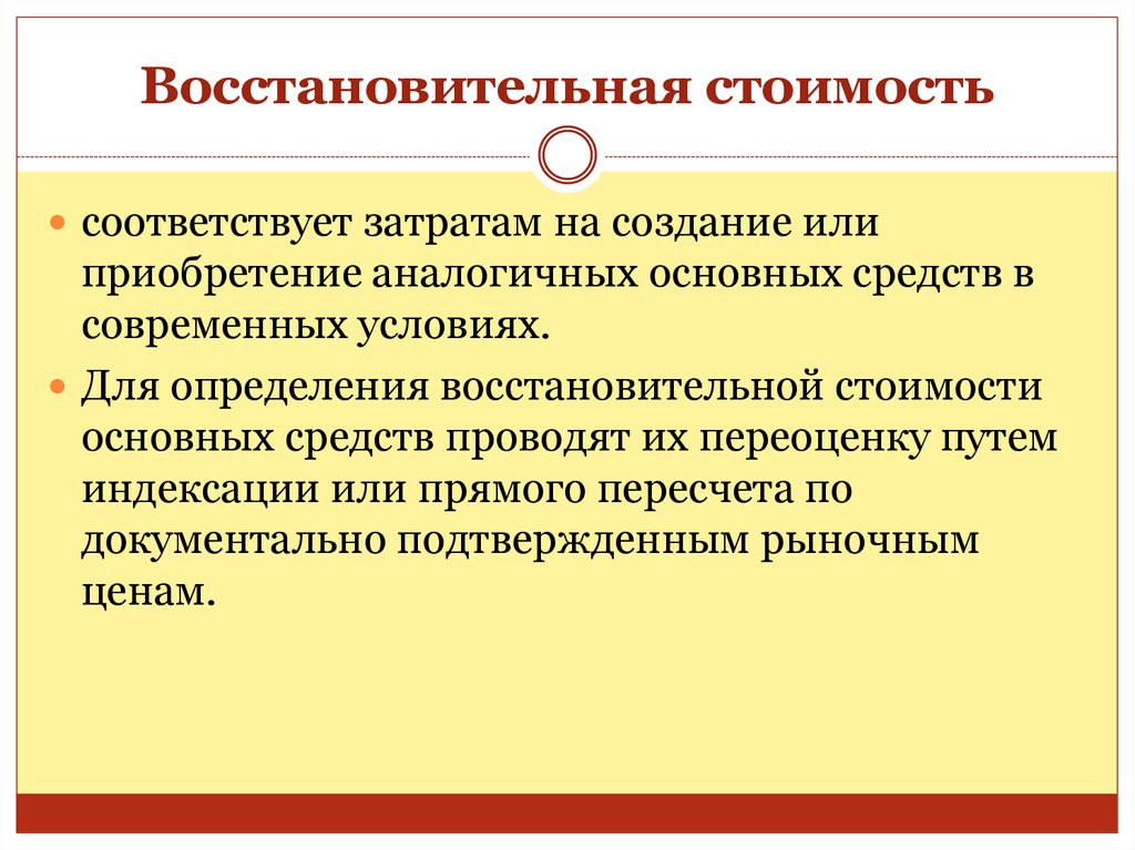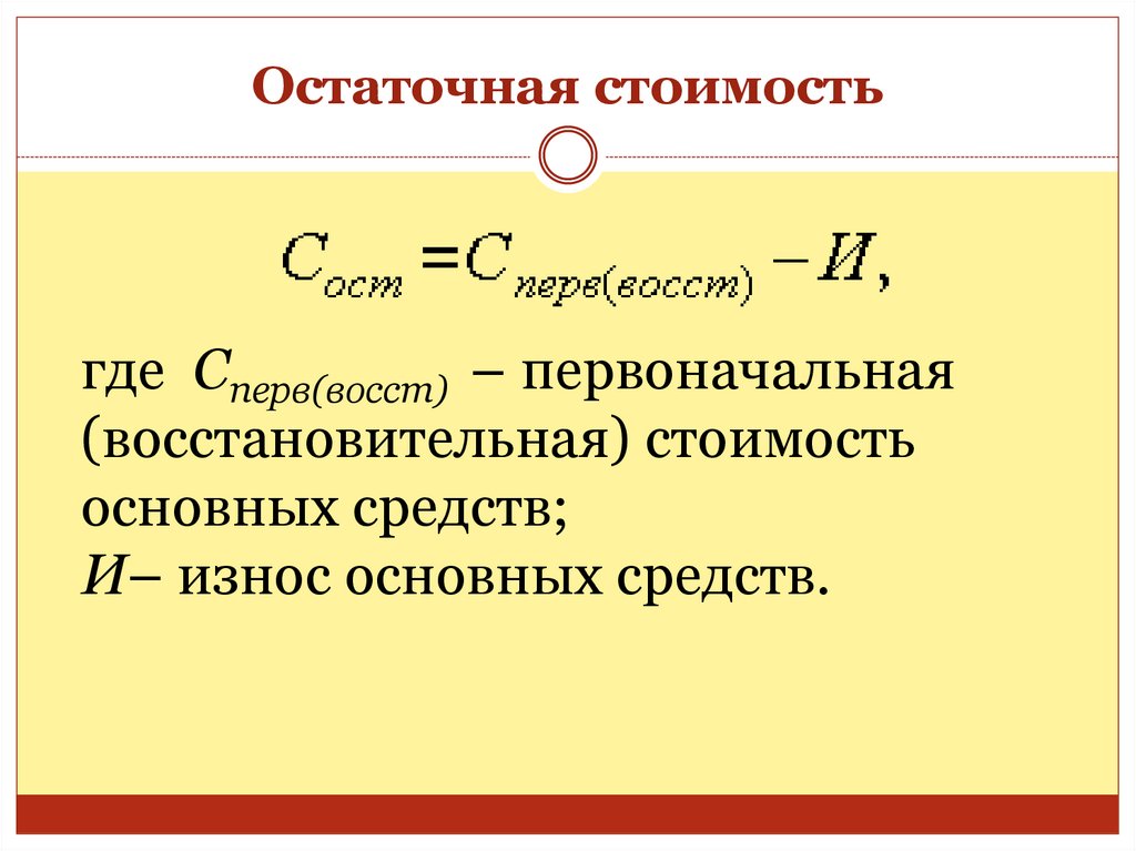 Остаточная стоимостьгде Сперв(восст) – первоначальная