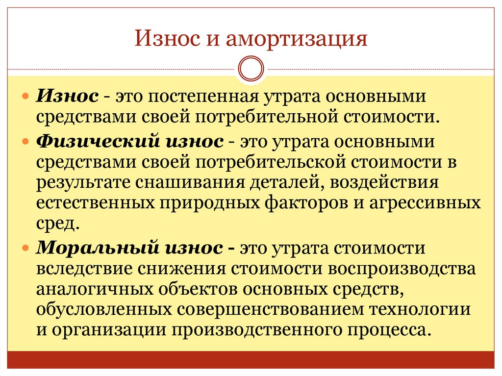 Износ и амортизацияИзнос - это постепенная утрата основными