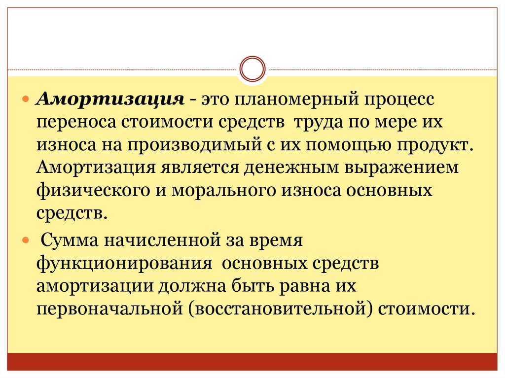 Амортизация - это планомерный процесспереноса стоимости средств труда по мере их