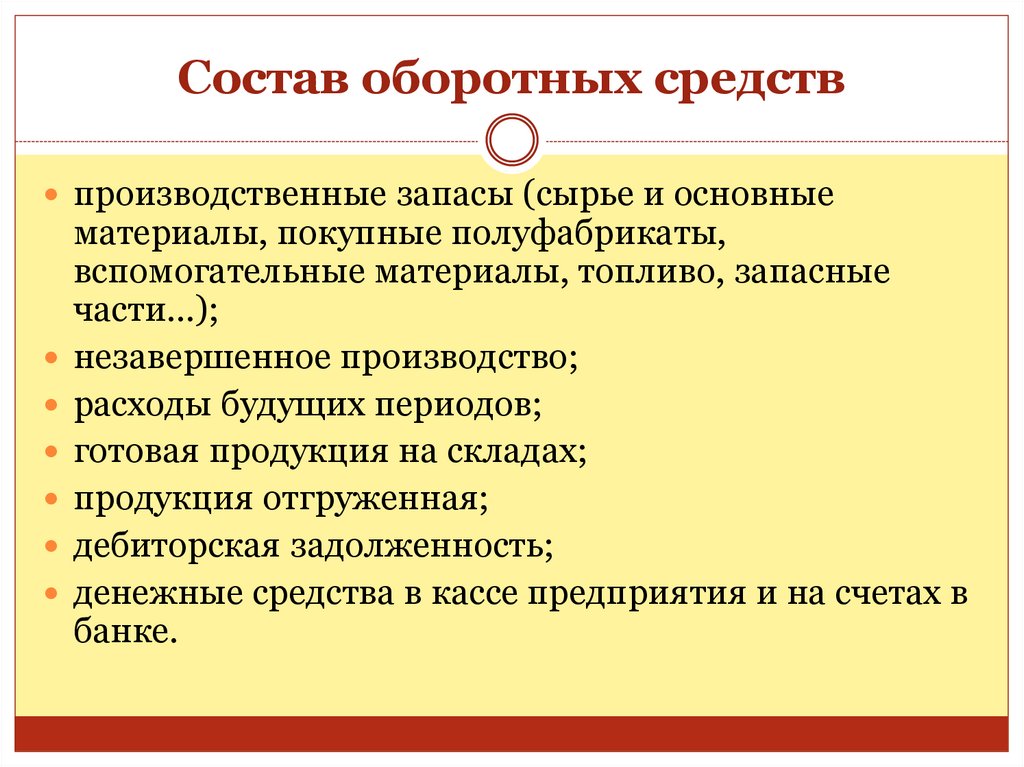 Состав оборотных средствпроизводственные запасы (сырье и основные