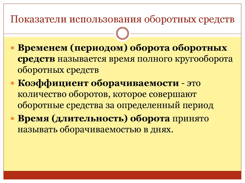 Показатели использования оборотных средствВременем (периодом) оборота оборотных