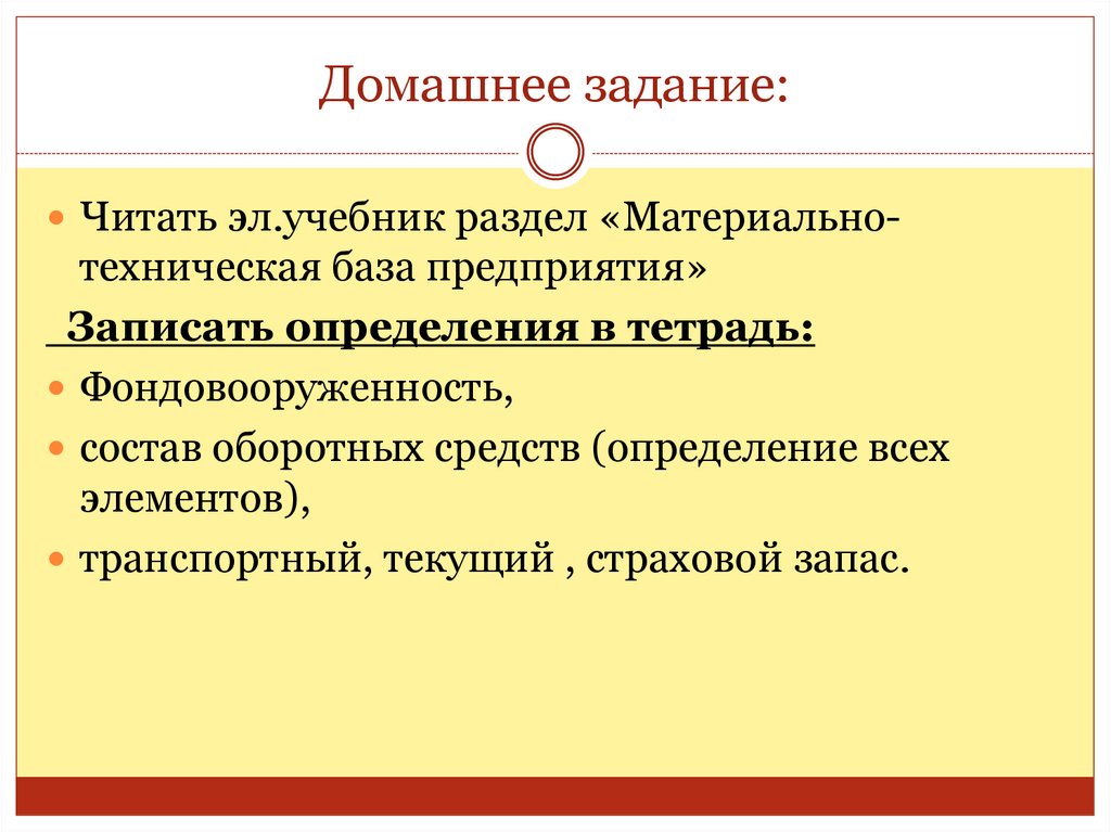 Домашнее задание:Читать эл.учебник раздел «Материально-