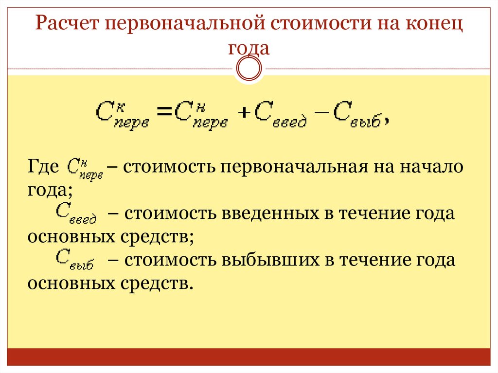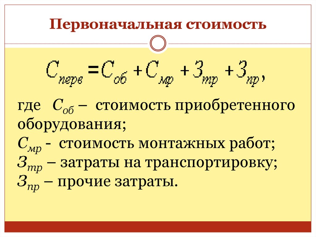 Первоначальная стоимостьгде Соб – стоимость приобретенного