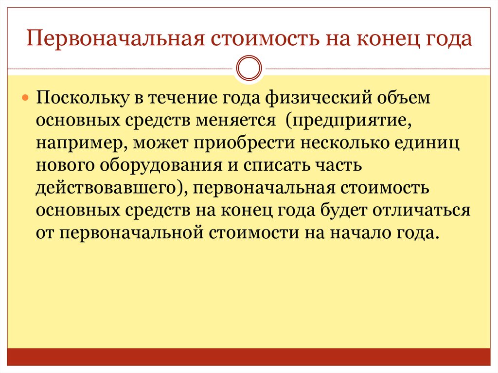 Первоначальная стоимость на конец годаПоскольку в течение года физический объем