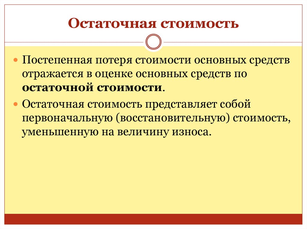 Остаточная стоимостьПостепенная потеря стоимости основных средств