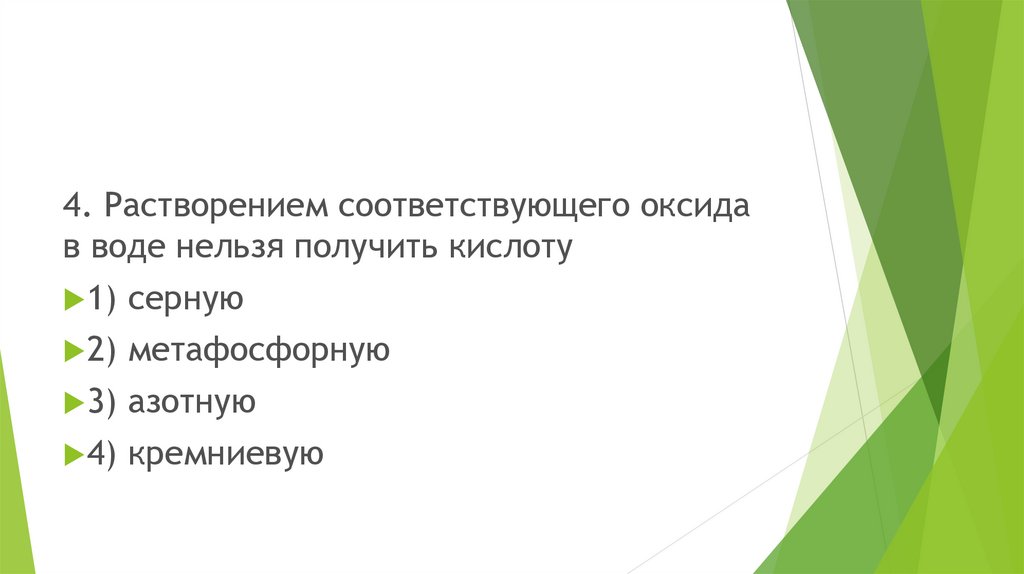 4. Растворением соответствующего оксидав воде нельзя получить кислоту