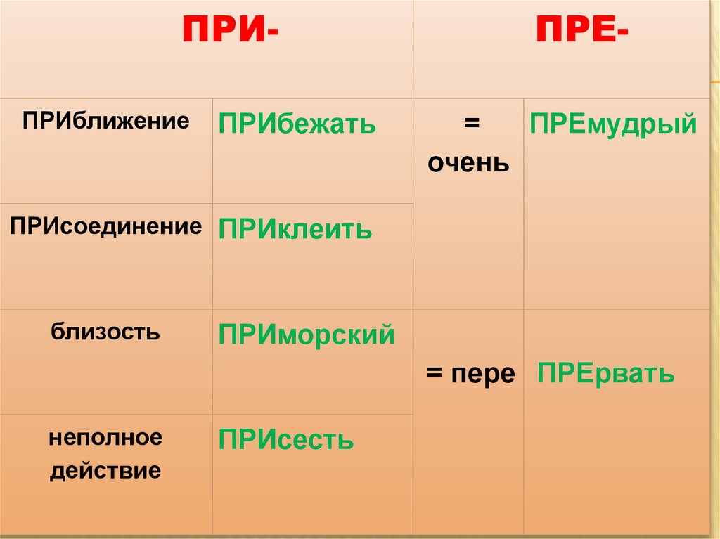 Правописание приставок пре- и при-