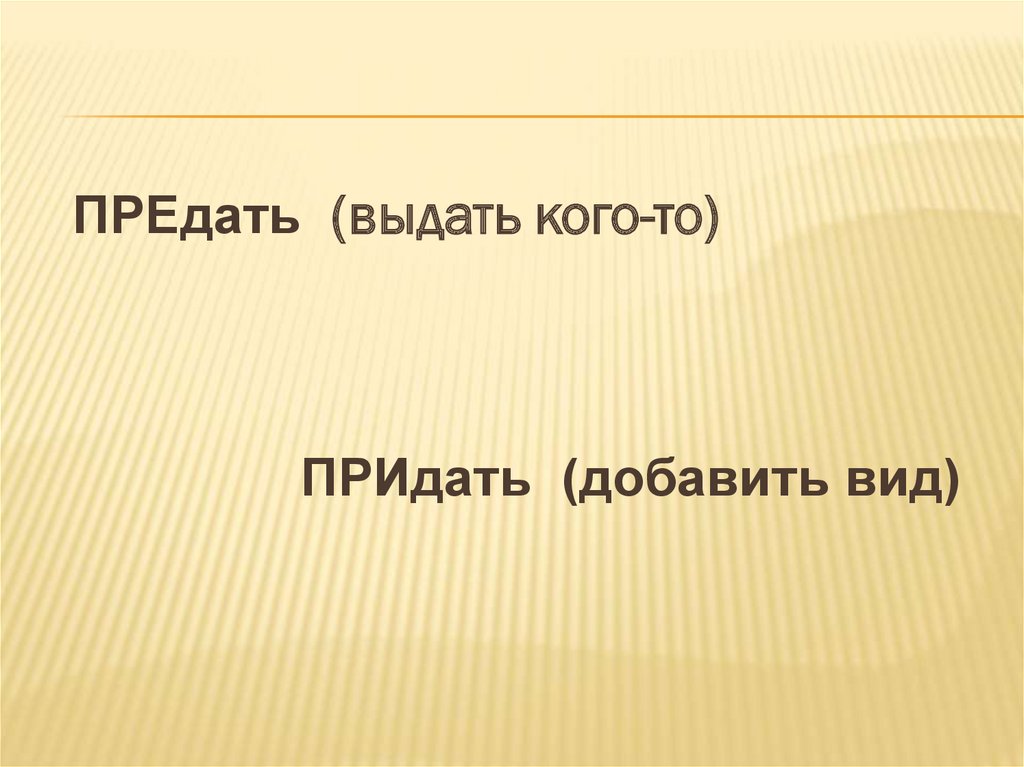 ПРЕдать (выдать кого-то)ПРИдать (добавить вид)